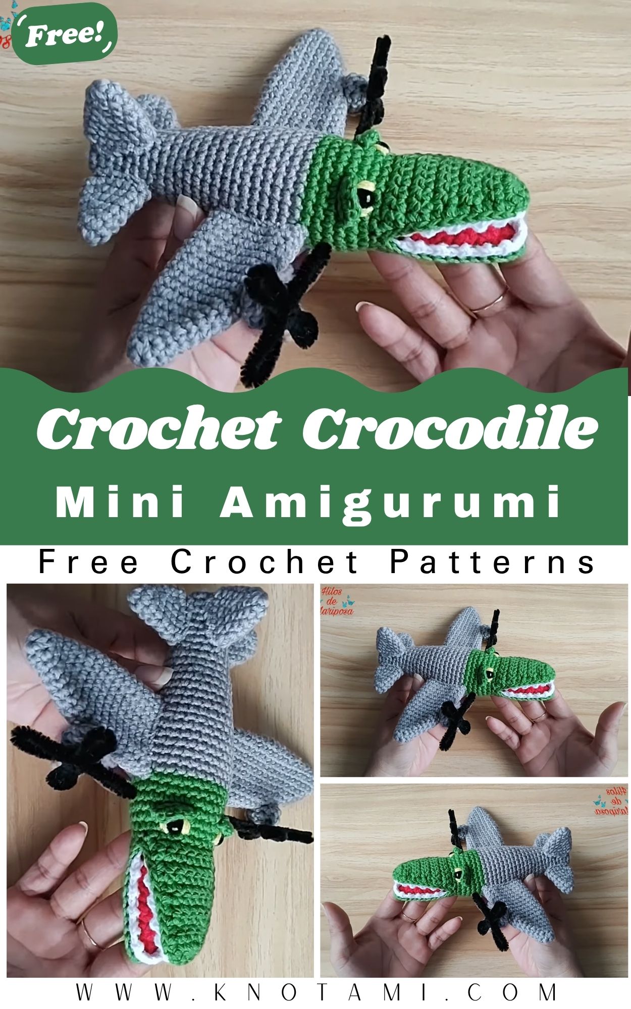 Yarn: Medium-weight (worsted) yarn in green or your preferred crocodile color (approximately 30–50 grams)