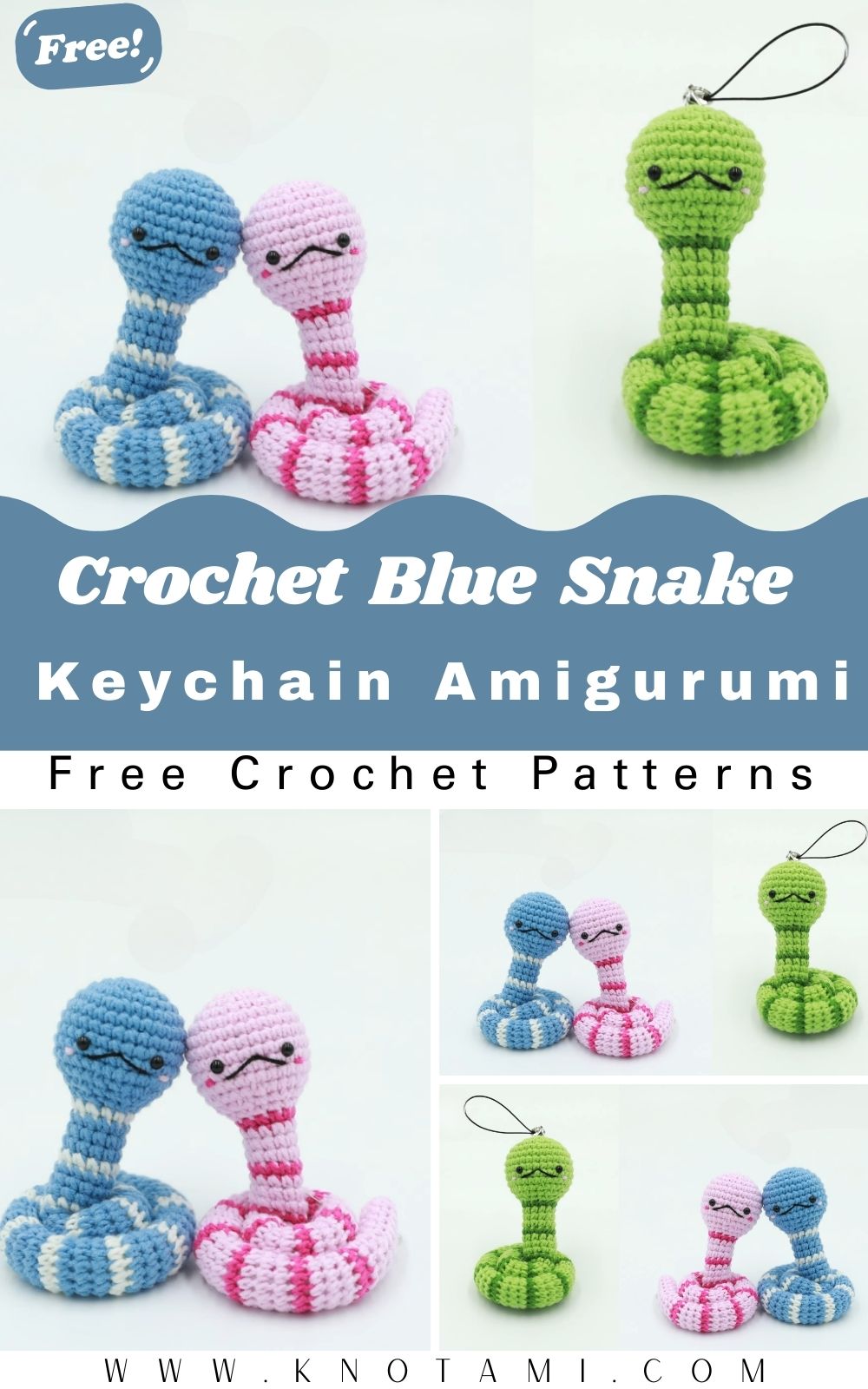 Looking for a quick project that’s cute, portable, and giftable? This Easy Crochet Snake Keychain Pattern turns a tiny amigurumi snake into the perfect everyday accessory, small enough for keys, bags, and zipper pulls. With a sweet, coiled body, an upright little neck, and a round head with a gentle smile, this mini snake amigurumi keychain is beginner-friendly and endlessly customizable in blue/white, pink/white, or cosy green stripes.